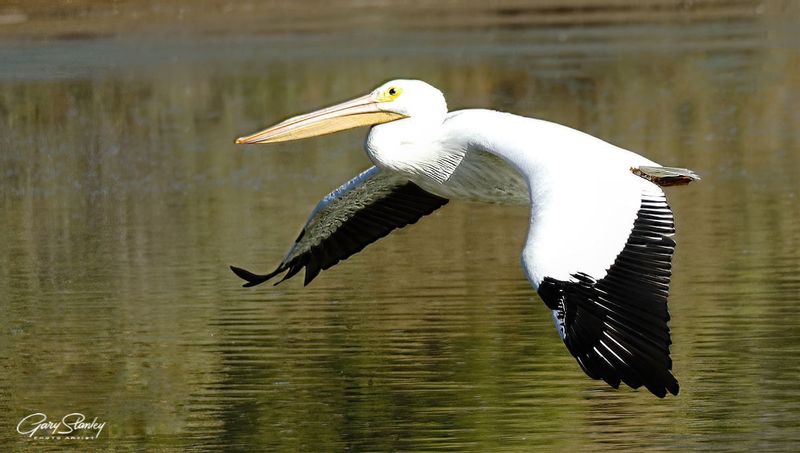 Pelican in flight Photographed at Riparian Ranch, Gilbert, Az.
