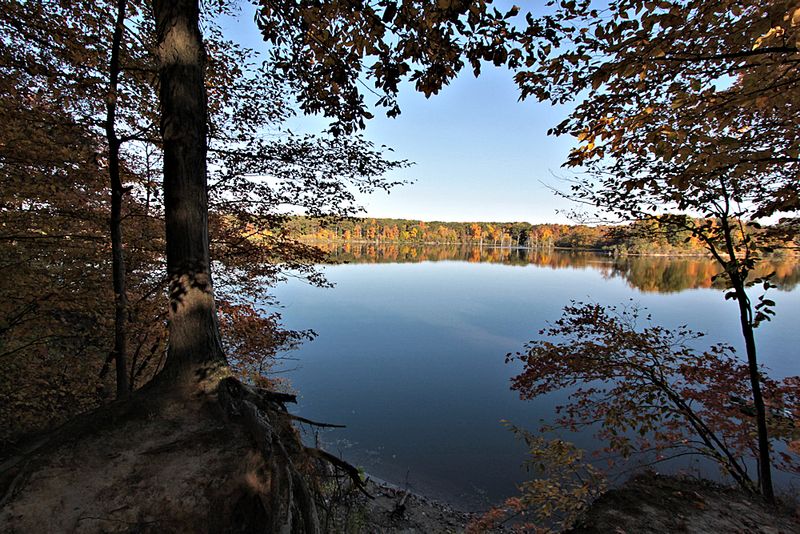Framing is perfect, drawing the eye to the opposite shore ... v